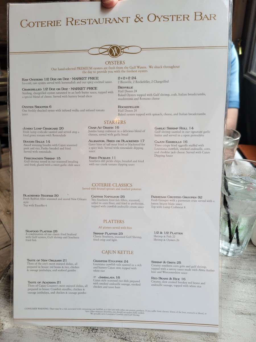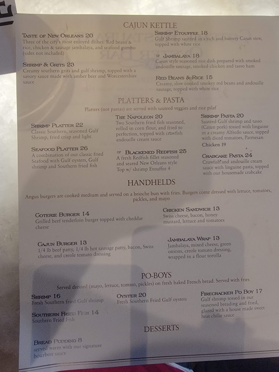 Welcome to Coterie Restaurant & Oyster Bar, a culinary gem nestled in the heart of New Orleans at 135 Decatur St. This vibrant venue offers a delightful menu that celebrates the essence of Southern and Cajun cuisines, boasting specialties that are a must-try.